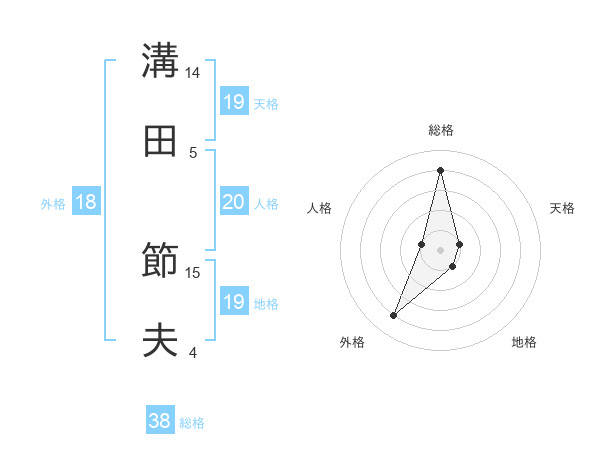 溝田 節夫さんの総格は38画の4点!