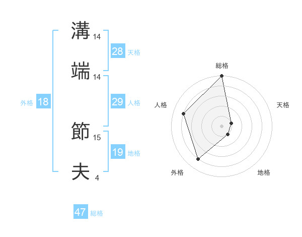 溝端 節夫さんの総格は47画の5点!