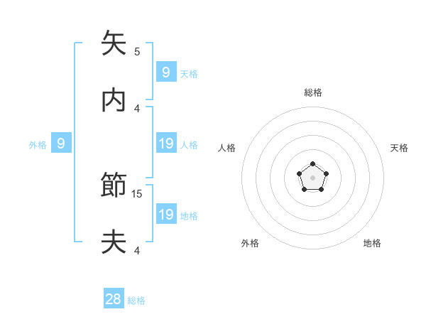 矢内 節夫さんの総格は28画の1点!