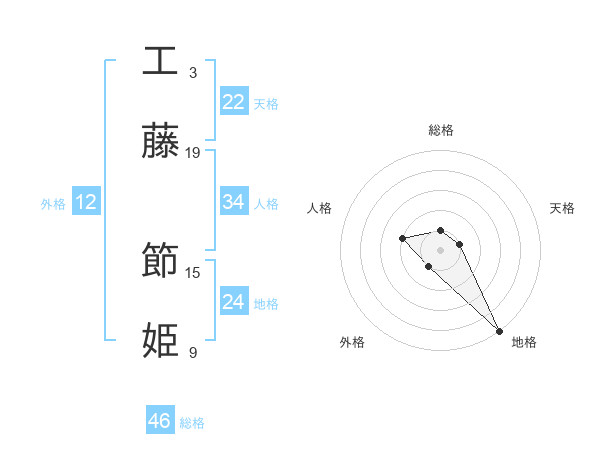 工藤 節姫さんを姓名の画数から五運を鑑定