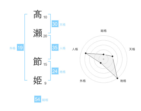 髙瀬 節姫さんの総格は54画の1点!