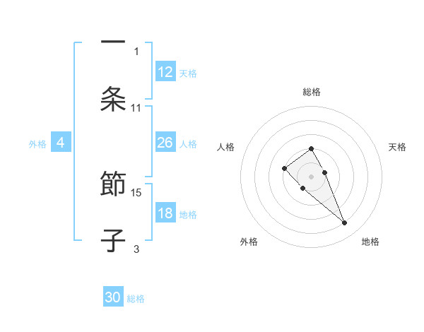 一条 節子さんの総格は30画の2点!