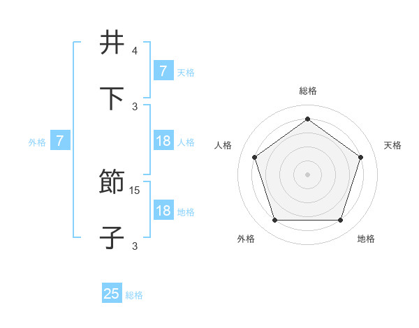 井下 節子さんの総格は25画の4点!