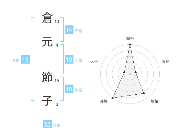 倉元 節子さんの総格は32画の5点!