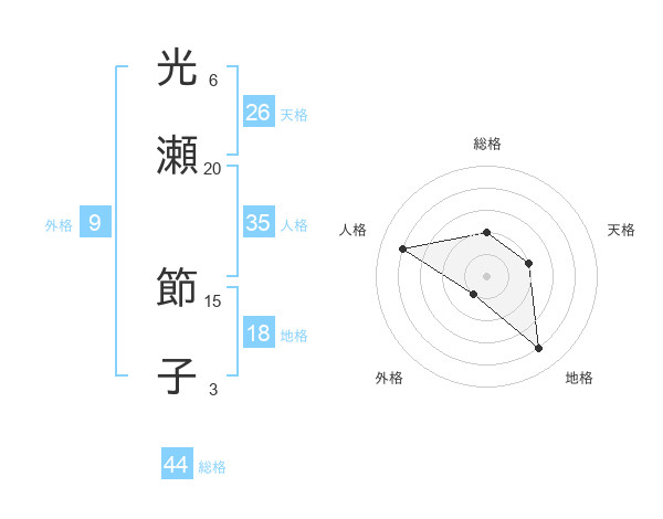 光瀬 節子さんの総格は44画の2点!