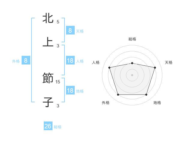 北上 節子さんの天格は8画の4点!