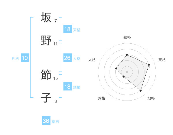 坂野 節子さんの天格は18画の4点!
