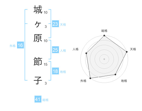城ヶ原 節子さんの総格は41画の5点!