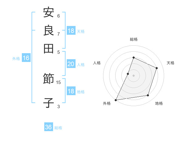 安良田 節子さんの外格は16画の5点!