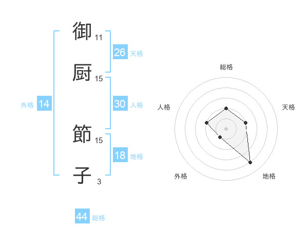 御厨 節子さんの総格は44画の2点!