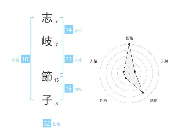 志岐 節子さんの総格は32画の5点!