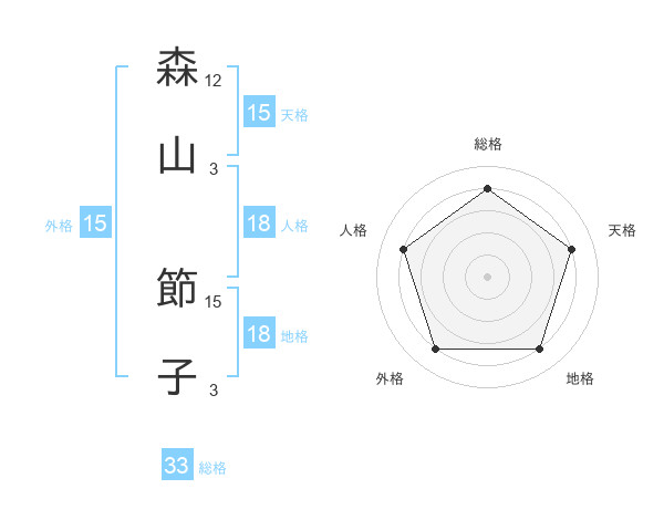 森山 節子さんの総格は33画の4点!
