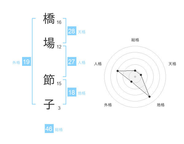 橋場 節子さんの総格は46画の1点!