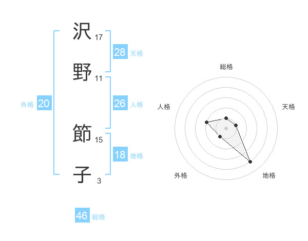 沢野 節子さんの総格は46画の1点!