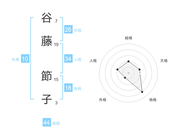 谷藤 節子さんを姓名の画数から五運を鑑定