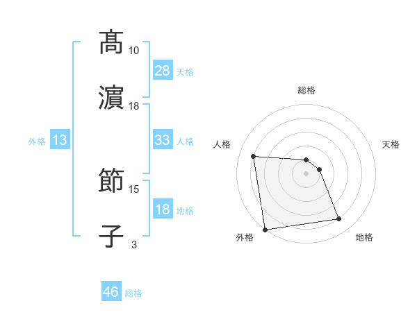 髙濵 節子さんの総格は46画の1点!