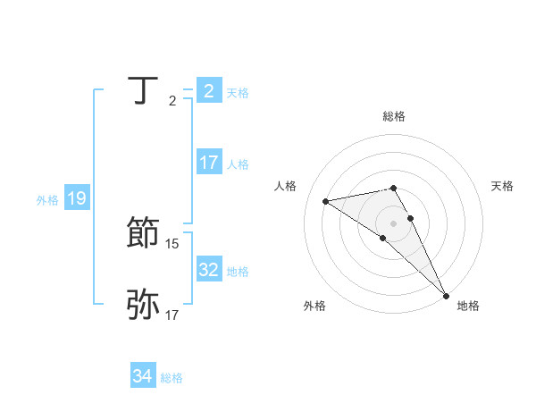丁 節弥さんの地格は32画の5点!