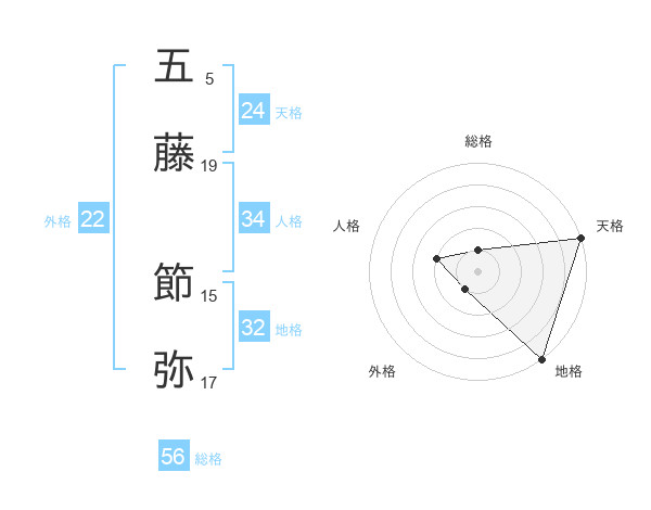 五藤 節弥さんの総格は56画の1点!