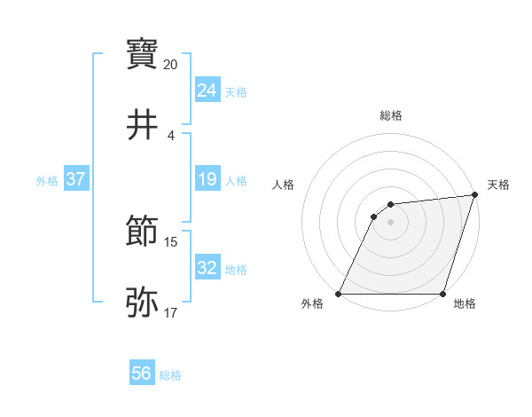 寶井 節弥さんを姓名の画数から五運を鑑定