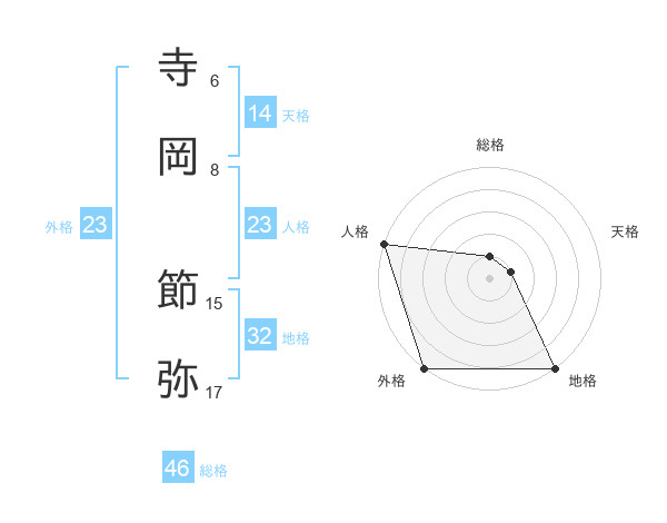 寺岡 節弥さんを姓名の画数から五運を鑑定