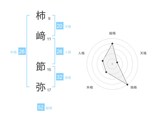 柿﨑 節弥さんを姓名の画数から五運を鑑定