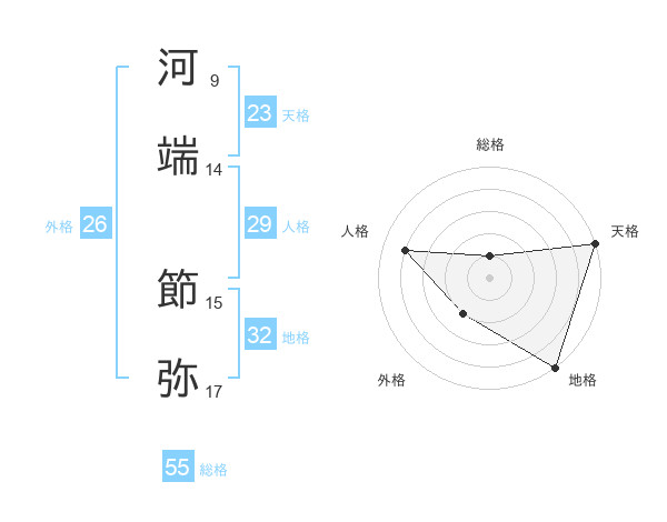 河端 節弥さんの天格は23画の5点!