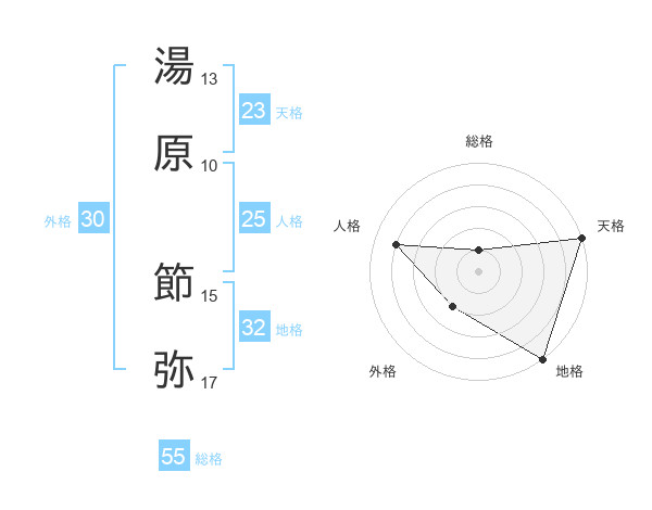 湯原 節弥さんを姓名の画数から五運を鑑定