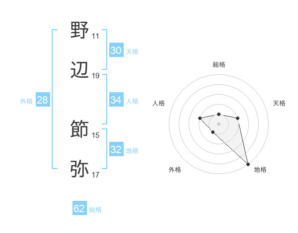 野辺 節弥さんの総格は62画の1点!