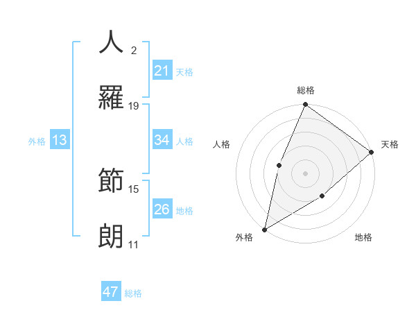人羅 節朗さんの総格は47画の5点!