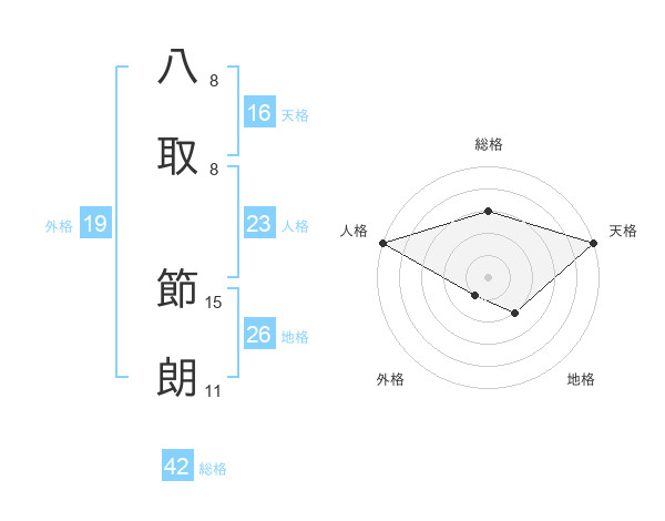八取 節朗さんの天格は16画の5点!