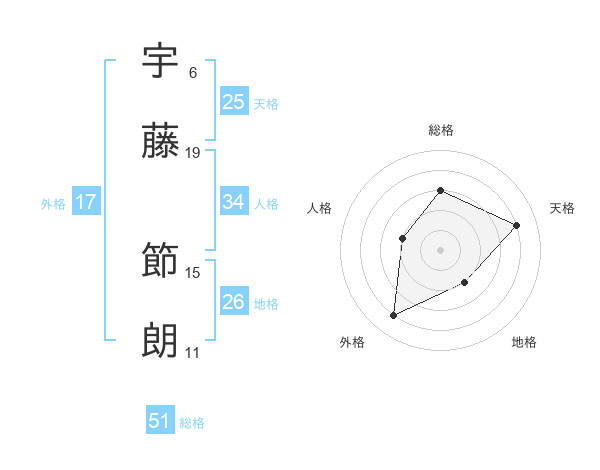宇藤 節朗さんの総格は51画の3点!