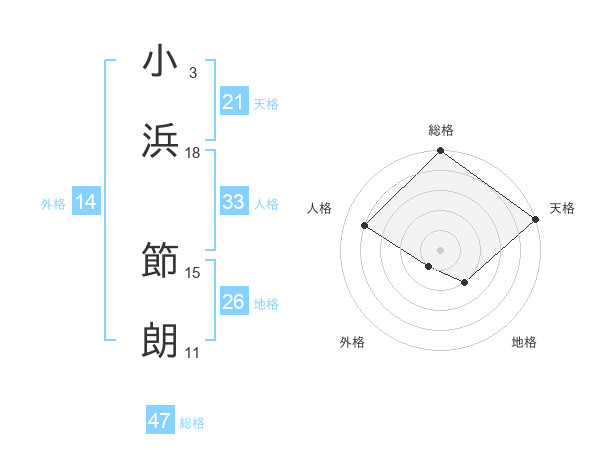 小浜 節朗さんの総格は47画の5点!
