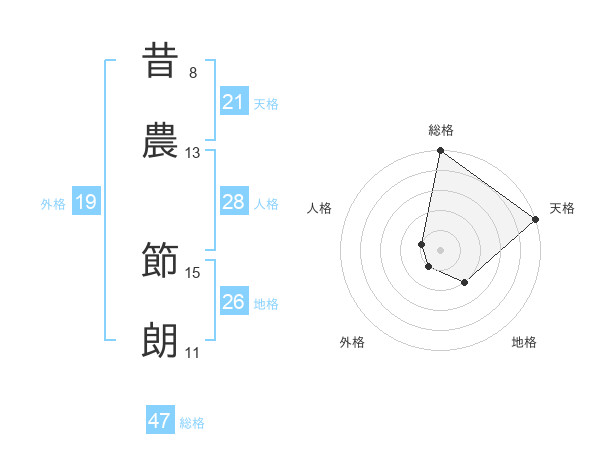 昔農 節朗さんを姓名の画数から五運を鑑定