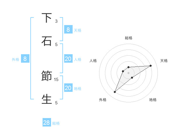 下石 節生さんの天格は8画の4点!