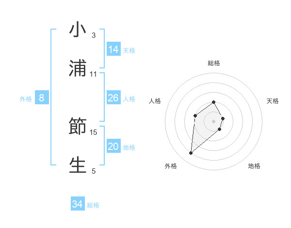 小浦 節生さんの総格は34画の2点!