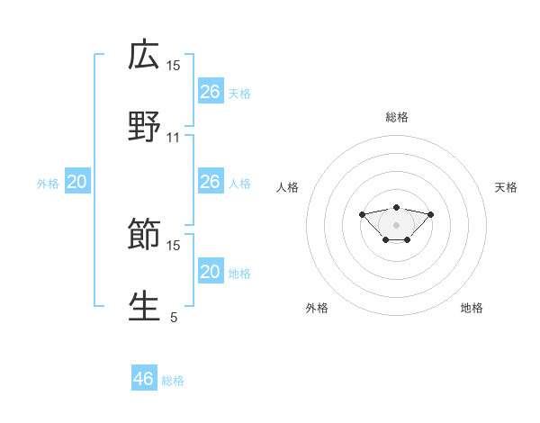 広野 節生さんの総格は46画の1点!