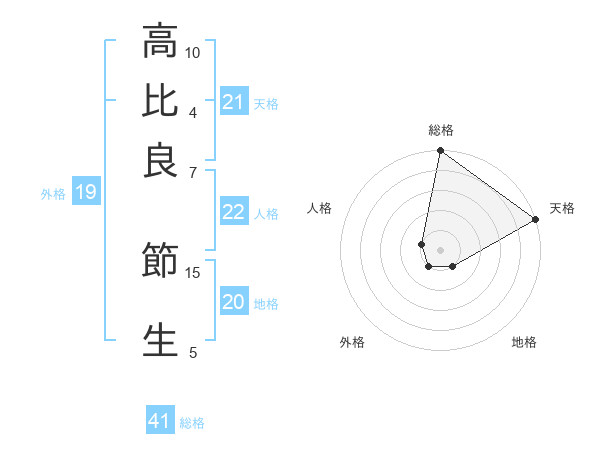 高比良 節生さんの天格は21画の5点!