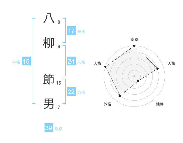 八柳 節男さんの外格は15画の4点!
