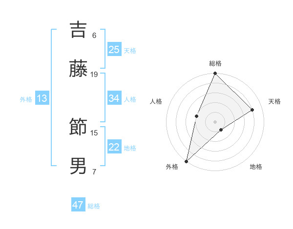 吉藤 節男さんを姓名の画数から五運を鑑定