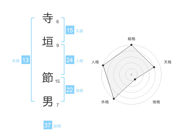 寺垣 節男さんの地格は22画の1点!