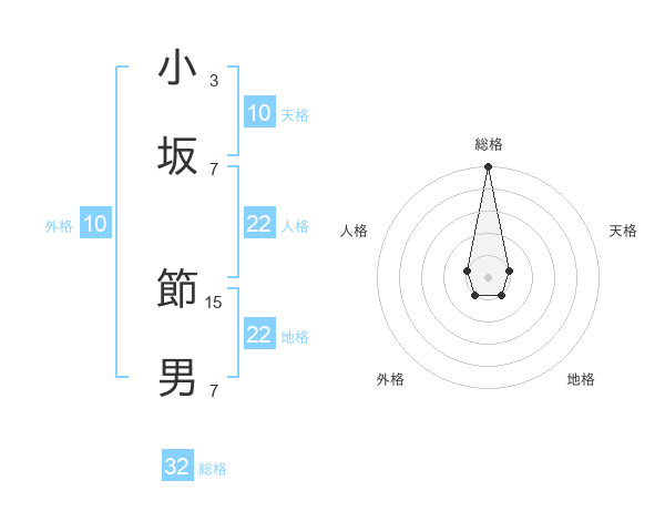 小坂 節男さんの総格は32画の5点!