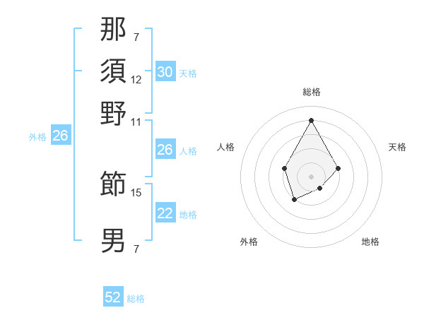 那須野 節男さんの総格は52画の4点!