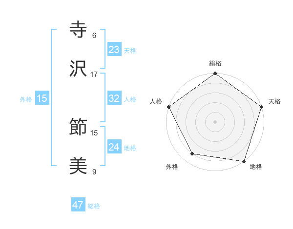 寺沢 節美さんを姓名の画数から五運を鑑定