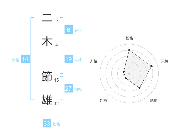 二木 節雄さんの総格は33画の4点!