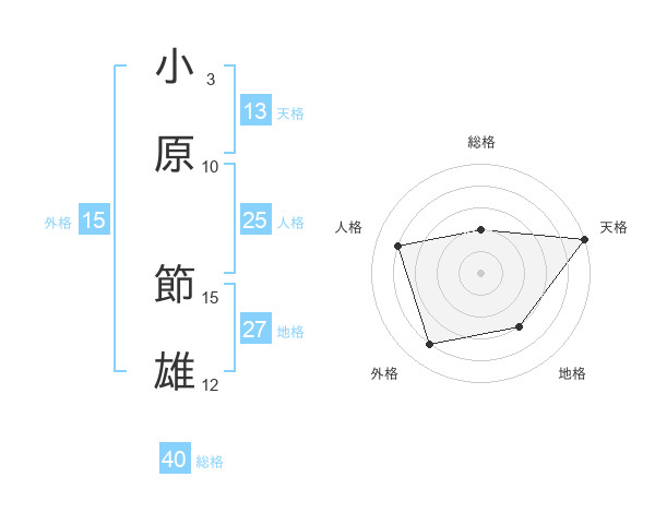 小原 節雄さんの地格は27画の3点!