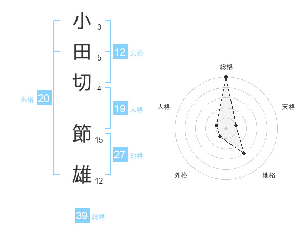小田切 節雄さんを姓名の画数から五運を鑑定