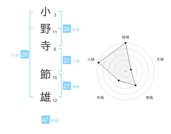 小野寺 節雄さんの総格は47画の5点!