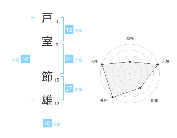 戸室 節雄さんの総格は40画の2点!
