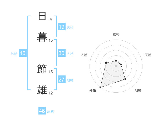 日暮 節雄さんを姓名の画数から五運を鑑定