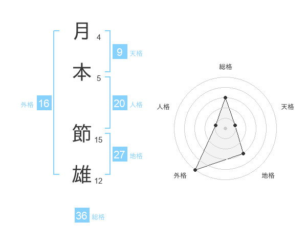 月本 節雄さんの総格は36画の3点!